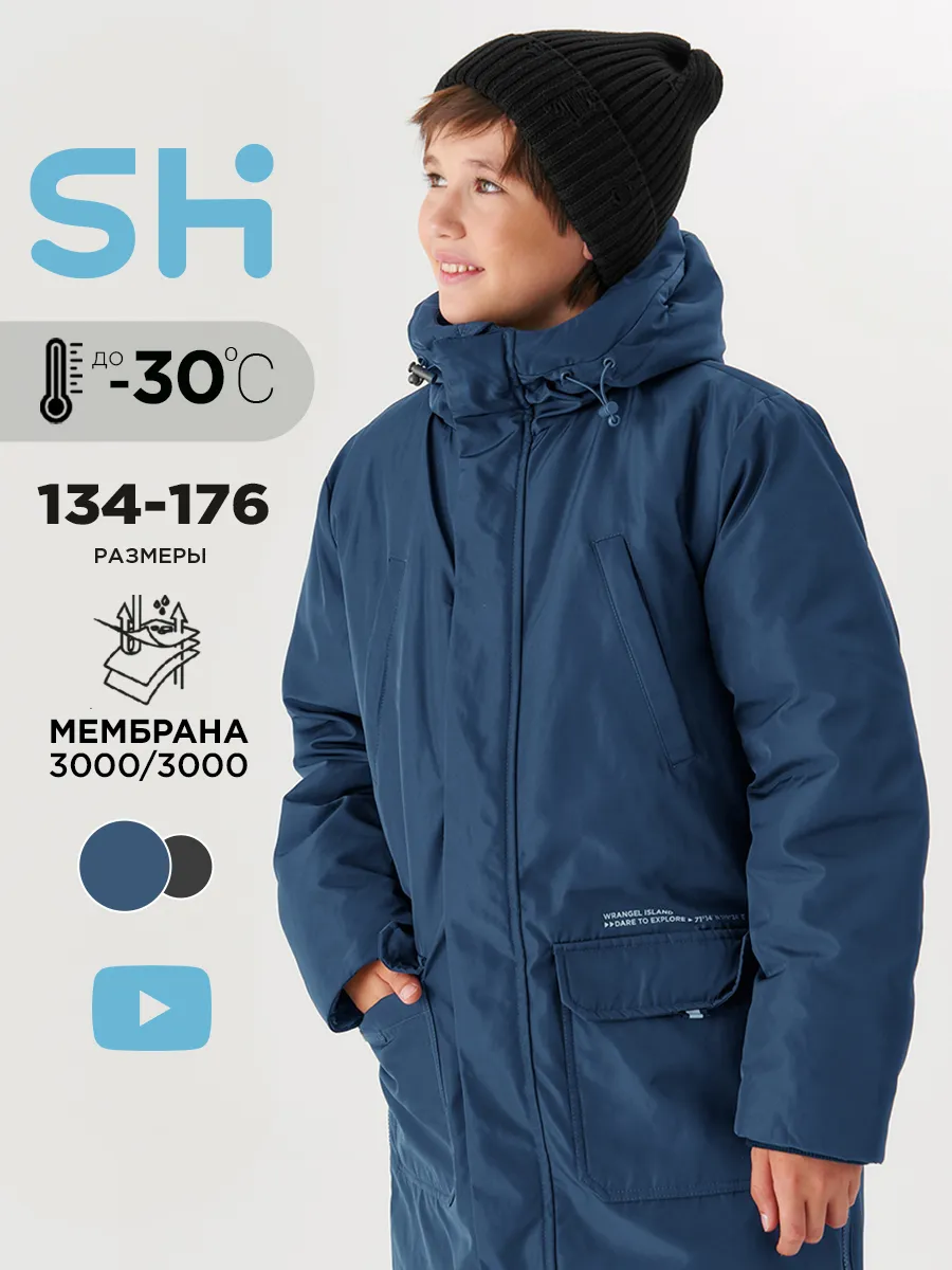 Куртка зимняя для подростка удлиненная теплая с капюшоном