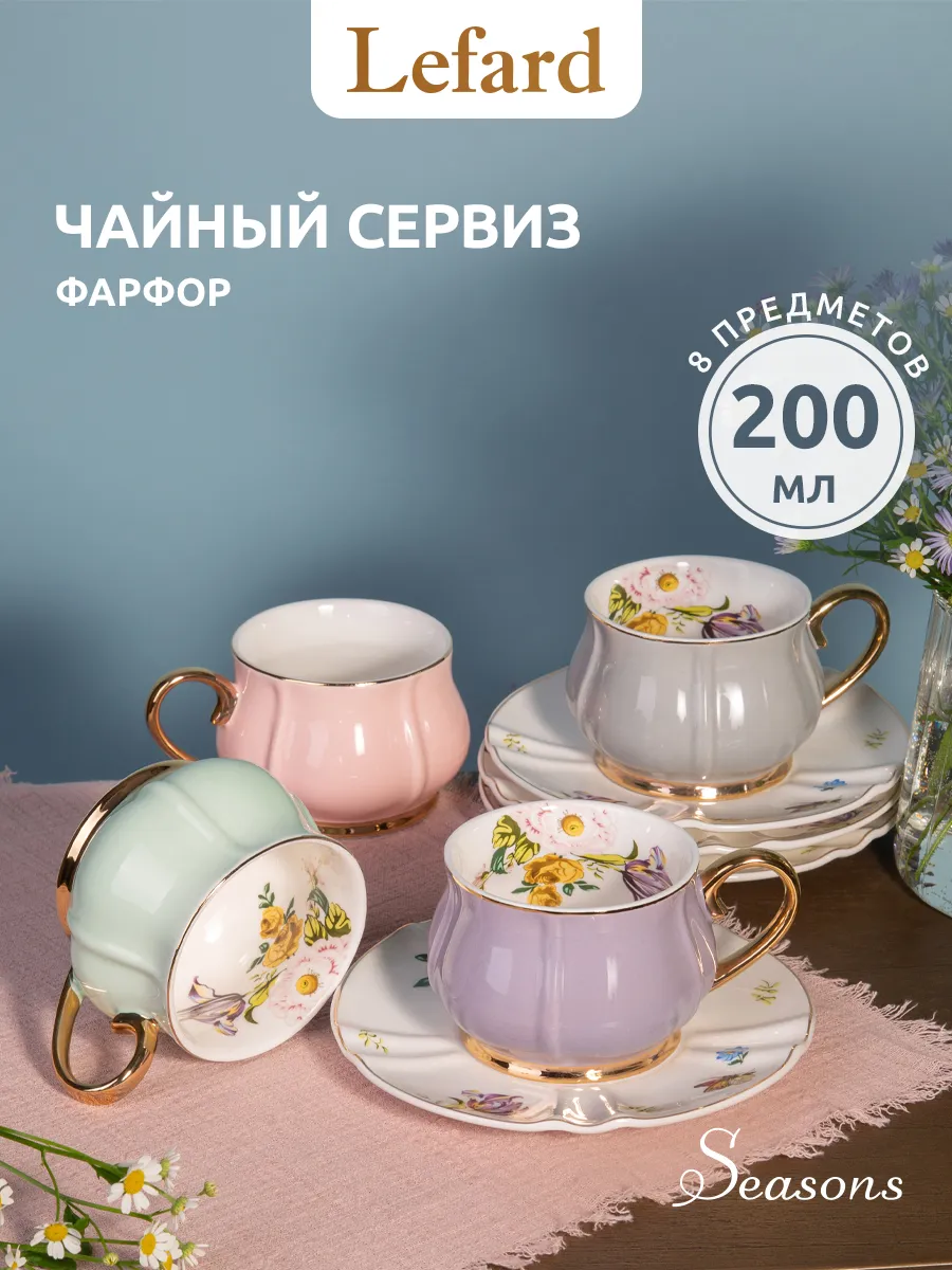 Чайный набор на 4 персоны 200 мл "Времена года" фарфоровый