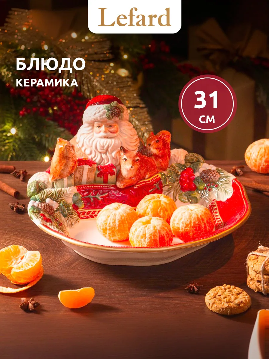 Блюдо 31 см новогоднее "Дед Мороз" керамика
