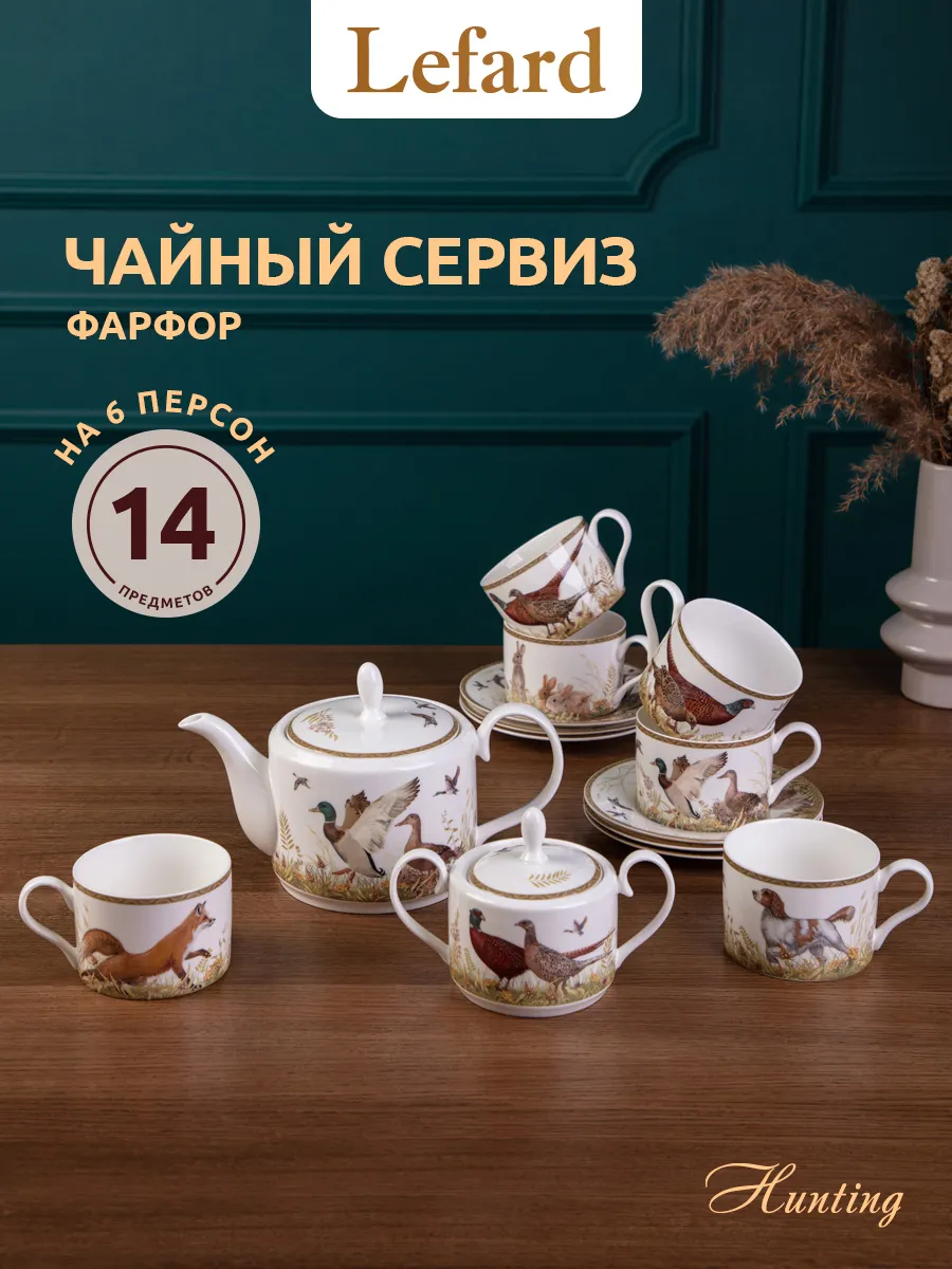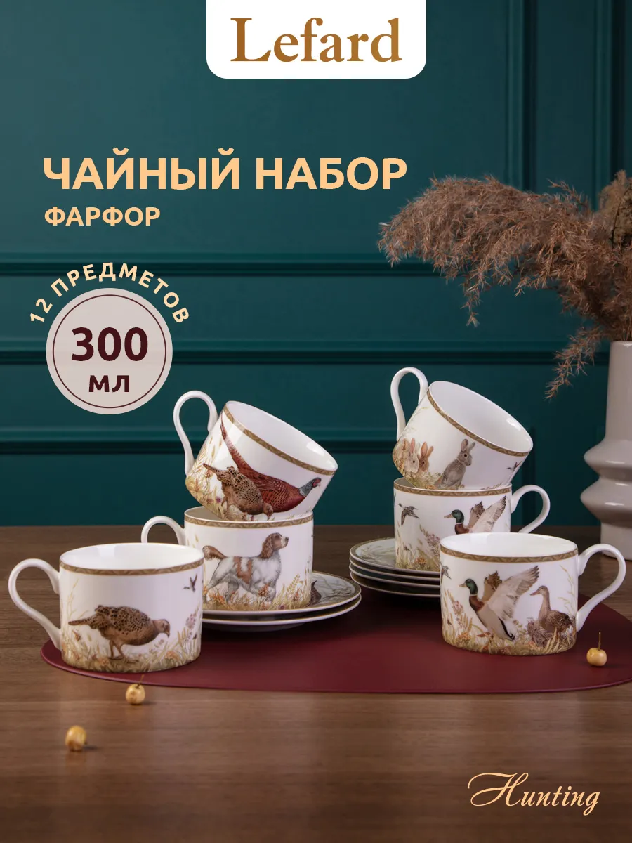 Чайный набор на 6 персон 300 мл "Охота" фарфоровый