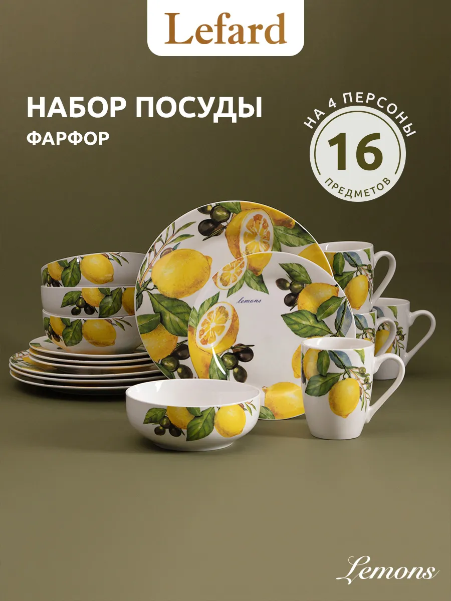 Набор посуды столовой 4 персоны «Лемон три» фарфор