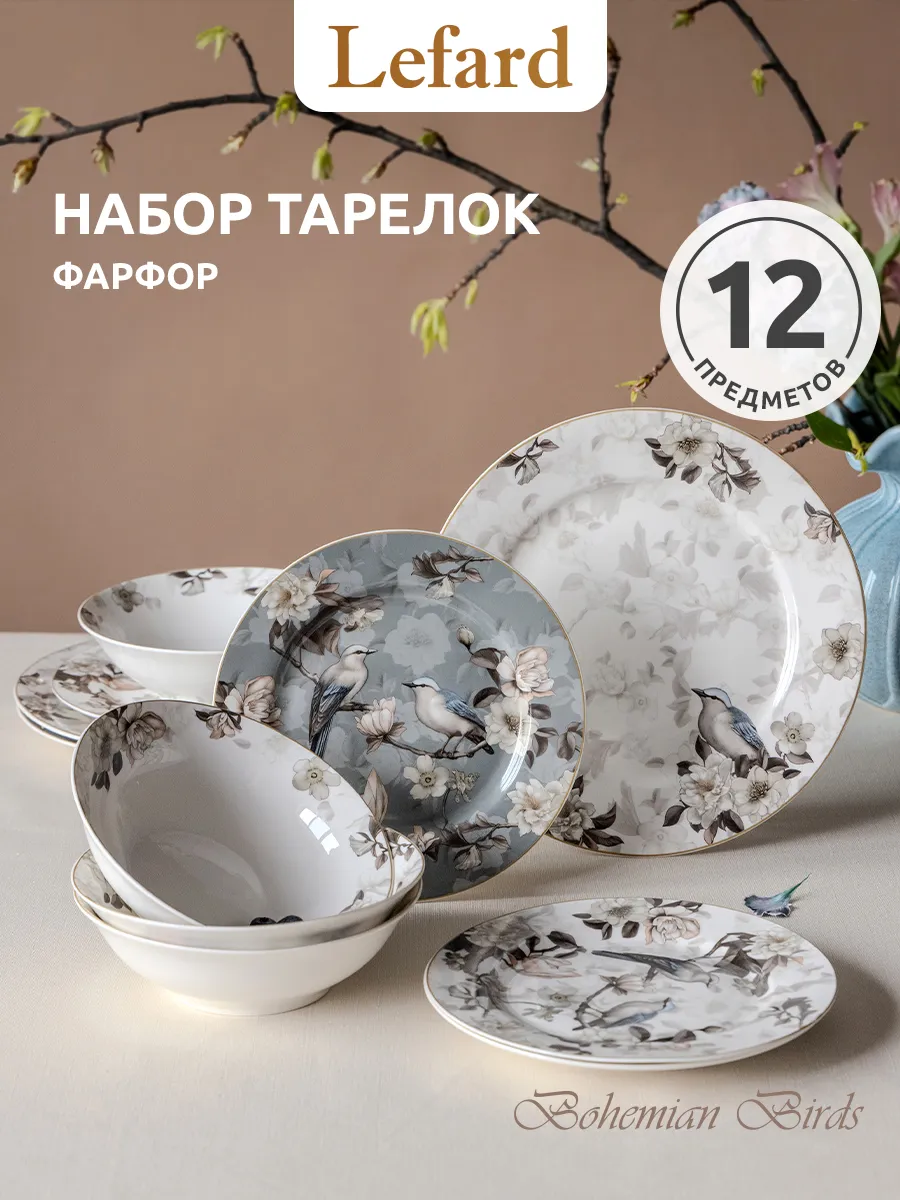 Набор тарелок фарфор на 4 персоны "Bohemian birds"